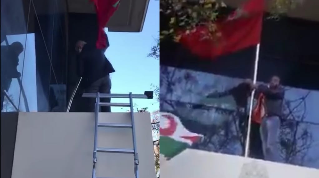 وتمكن المناصرون لجبهة البوليساريو، خلال الموعد، من الوصول إلى أسوار القنصلية المغربية وإنزال العلم الوطني المغربي من أجل وضع خرقة الانفصاليين، وبالتالي انتهاك حرمة وسلامة المقر القنصلي.