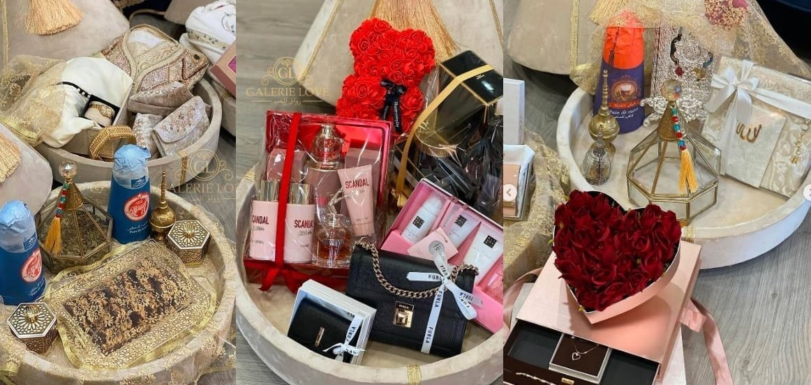 تكون الهدية عبارة عن ملابس جديدة متنوعة + الحناء + مختلف الفواكه الجافة + تمر + وسكر و مجوهرات تكون مرتبة بطريقة منظمة عند متخصصين في الطيافر و تكون محملة بالأثواب ذات الأوان الزاهية لخياطة البسة العروس التي ترتديها ليلة العرس اضافة إلى اقمشة اخرى لخياطة الجلباب ، أيضا ما يسمى “الشرابيل” والأحذية وملابس النوم والملابس الداخلية والروائح والشنط وأطقم الذهب وصواني مملوءة عن آخرها بأكياس من الحناء والتمر المحشي باللوز الملون. بالإضافة الى صواني مملوءة بالحلويات والحليب بالإضافة الى كيس كبير من السكر.