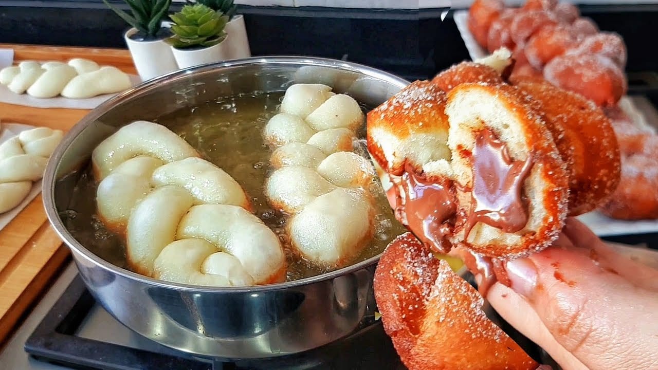 بعد ذلك تشكل الفطائر،قومي بحشوها بالشوكولا،ثم تقلى في زيت ساخن.