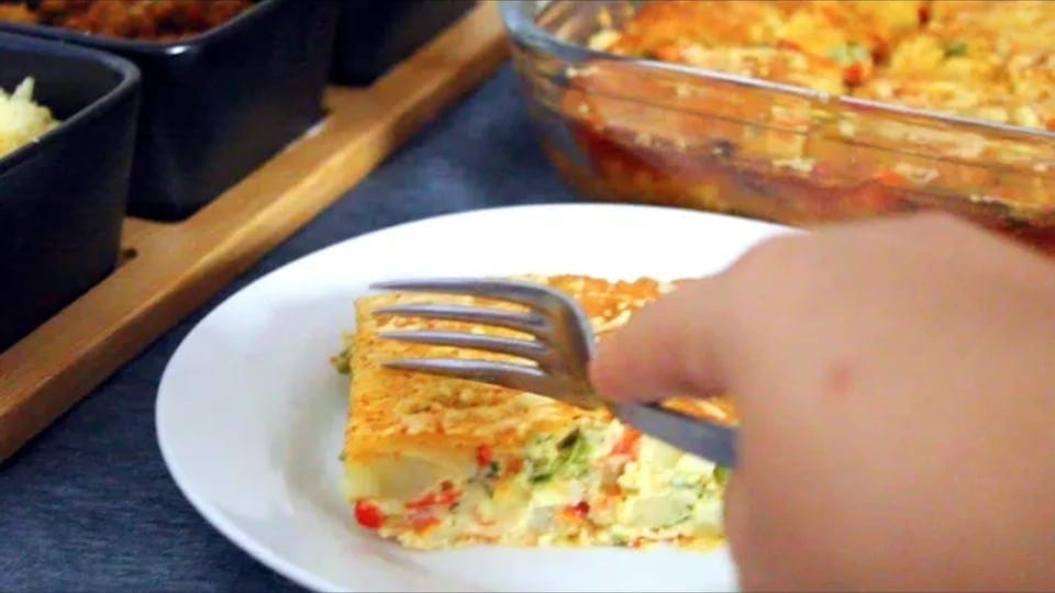 نسلق البطاطس ثم نحضر الخليط ونطهو الفلافل والطماطم والبصل ثم في إناء نخلط البيض مع الحليب نضيف له نصف كأس دقيق الفلفل الاسود والجبن قطع نمزج جيدا ثم نضيف باقي المكونات ثم نسكبه في وعاء يدخل الفرن .